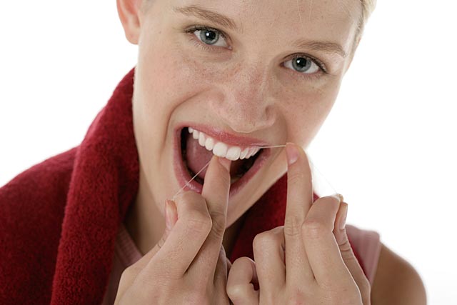 Zahnseide ist für die Reinigung enger Zahnzwischenräume geeignet. Beschichtete Zahnseiden (Wachs, Teflon) gleiten besser in den Zwischenraum.